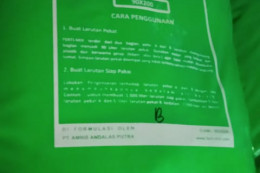 Perendaman benih 1 tutup / 1 liter air selama 15 menit, pengolahan lahan 20 tutup / tangki 14 liter air, penyemprotan lanjutan