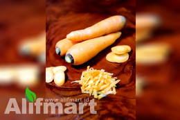 ALIF Mart - Wortel Kuroda [Area Bandung] Benih wortel new kuroda yang diproduksi oleh perusahaan benih Jepang, Takii Seed, ini tergolong unggul dan cukup melegenda dikalangan petani. Benih wortel new kuroda ini sering membuat para petani kebingungan akibat stok yang menipis. Hal ini dikarenakan benih wortel unggul ini masih diproduksi dan diimpor dari Jepang. Berikut beberapa alasan yang menjadikan wortel new kuroda menjadi tanaman unggulan. 1. Benih Wortel New Kuroda sangat mudah perawatannya karena ketahanan hama dan penyakit yang relatif lebih baik dibanding varietas lainnya. 2. Wortel new kuroda bisa beradaptasi dengan hasil yang baik pada dataran dengan ketinggian 700–1.500 Mdpl. 3. Warna umbi dari wortel ini berwarna merah dan mengkilat, selain itu ukuran dan panjang wortel ini terbilang besar dengan rata-rata beratnya mencapai 300 gram/umbi sehingga tidak heran jika wortel ini cukup digemari di pasaran. 4. Umbi wortel new kuroda sangat tahan untuk disimpan dalam ruangan dan bisa tahan sampai satu minggu.